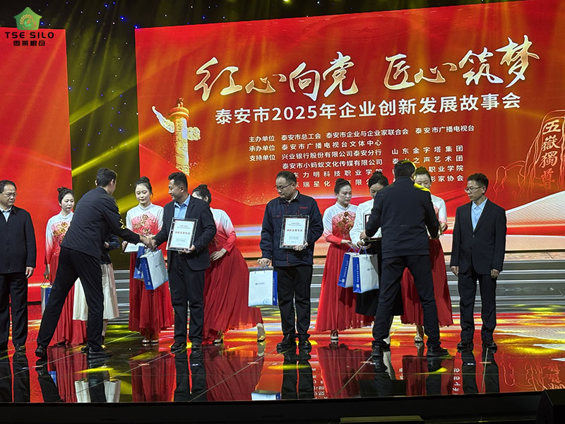 11月28日,在“红心向党 匠心筑梦”泰安市2025年企业创新发展故事会上,山东雪莱粮仓智能科技有限公司张玉峰同志凭借其在推动企业技术创新、模式革新方面的卓越贡献与前瞻指导,荣获大会颁发的“创新先锋”荣誉称号,成为全场瞩目的焦点。